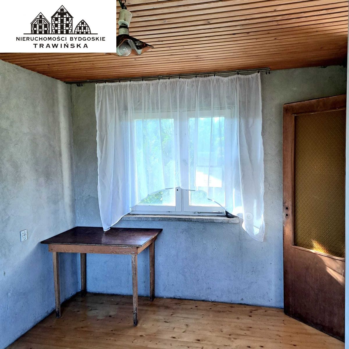 Na wysokim parterze znajdziesz przestronny pokój z dostępem do tarasu, oddzielną kuchnię, łazienkę oraz przedpokój - wszystko do własnej aranżacji i wykończenia według własnych upodobań. Dach domu jest betonowy, pokryty papą, co stanowi solidną bazę do odświeżenia i adaptacji.